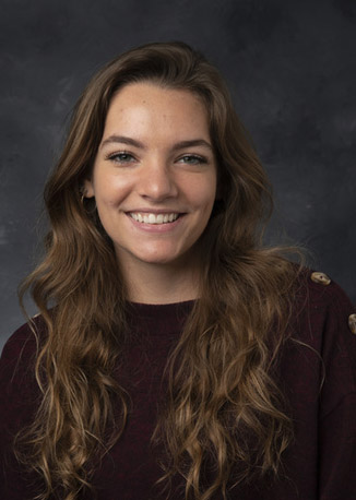 Two Global Health Studies Majors, Naomi Marroquin and Emma Sillman, are showcased in the Dare to Discover campaign and have banners highlighting their research on Washington Street in downtown Iowa City.