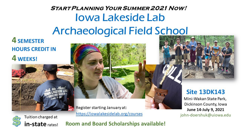 Registration open for 2021 Iowa Lakeside Lab Archaeological Field School